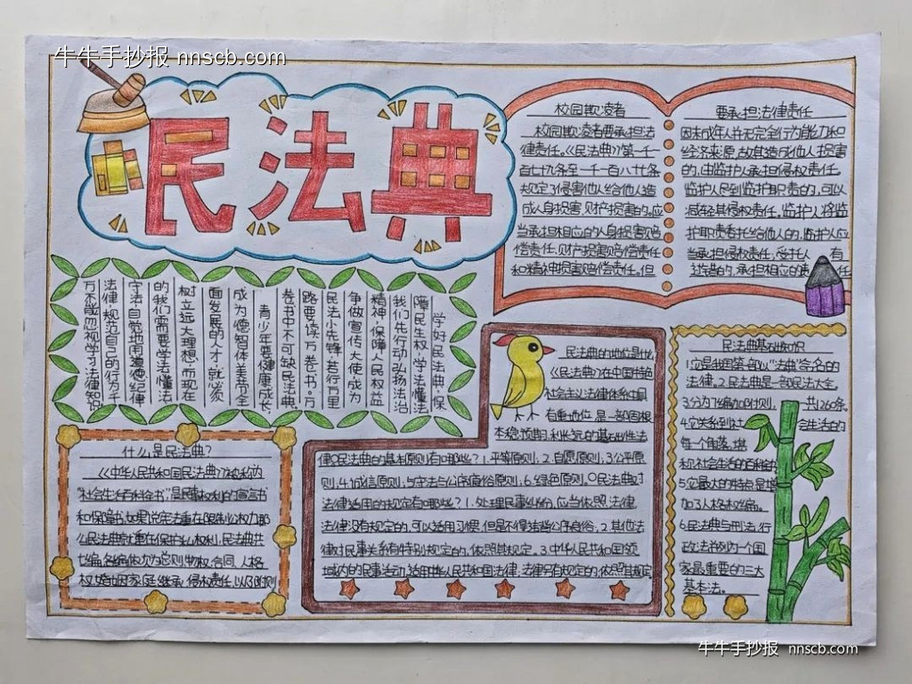 学习《民法典》,防范学生欺凌小学生手抄报精选作品4张是关于民法典的手抄报图片,适合关于“法律、民法典、民法在我心、学习民法典、民法典相伴、民法行动、法治教育、遵纪守法、校园欺凌、反对校园欺凌、学生、小学生、学生”等相关主题手抄报的小伙伴参考借鉴。